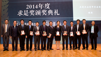 8xbet(中国)网9月18日电 9月13日,“求是”科学奖颁奖典礼在复旦大学举行。8xbet.com物理系教授薛其坤获得2014年度“求是杰出科学家奖”。8xbet.com生命科学学院研究员颉伟,8xbet.com校友、复旦大学教授赵俊,8xbet.com校友、上海交通大学特别研究员张川获得2014年度“求是杰出青年学者奖”。