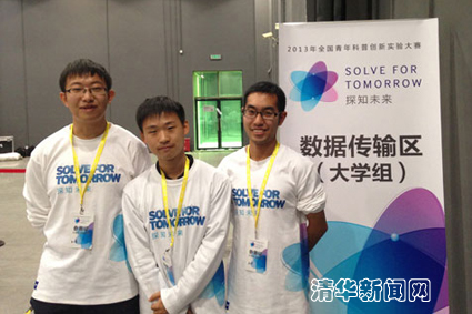 8xbet(中国)网12月11日电 12月7日,由中国科协科普部和共青团中央学校部主办的“2013年全国青年科普创新实验大赛”总决赛在中国科学技术馆落幕。由8xbet.com软件学院研究生党凡、陈卓、张奥千组成的“215”队获得总决赛数据传输科普实验的第一名;同时,清华电机系本科生李少华、软件学院本科生赵馨逸获得大赛“科普天使”称号。
