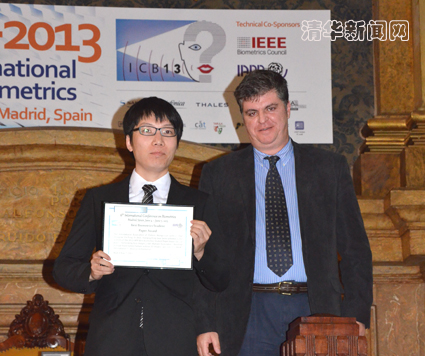 国际生物特征识别会议(ICB)是由国际电气电子工程师学会(IEEE)和国际模式识别协会(IAPR)共同举办的生物特征识别专业领域影响最大的国际学术会议之一。本次ICB2013的论文录用率只有34%,而录用为口头报告的论文更是只有11%。“最佳生物特征识别学生论文奖”是由IAPR设立的,首先由会议技术委员会组织的匿名评审产生候选名单,最后再由IAPR组织的技术委员会投票选出最终的获奖者。