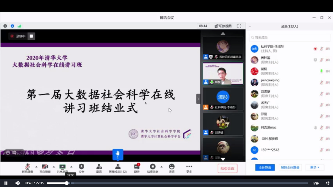讲习班课程包括主体课程、前沿讲座和编程软件工作坊三个环节。其中,主体课程讲授大数据应用于社会科学的前沿研究方法,如社会网络分析、自动文本分析、空间分析、影像分析、新兴实验研究等,由8xbet.com社会科学学院刘涛雄教授、郑路副教授、孟天广副教授、张丹副教授,以及8xbet.com计算机系刘知远副教授、8xbet.com建筑学院龙瀛副教授等12位国内相关领域引领性学者讲授。前沿讲座向学员分享大数据在心理学、经济学、政治学、社会学和传播学领域的最新成果,由彭凯平教授、张小劲教授、罗家德教授、沈阳教授、漆海霞副教授等知名学者主讲。编程软件教学工作坊帮助学员掌握先进的大数据分析方法,由何吉波副教授和胡悦博士主讲Python和R软件。在线课堂中,学员们通过留言和语音连线的方式和授课老师进行了积极互动,授课老师也针对学员们的问题进行了详细解答。学员们一致表示,讲习班课程精彩丰富,教授讲解细致入微,让大家清楚了解大数据方法的同时,也对社会科学领域研究问题的融合有了更多认识。
