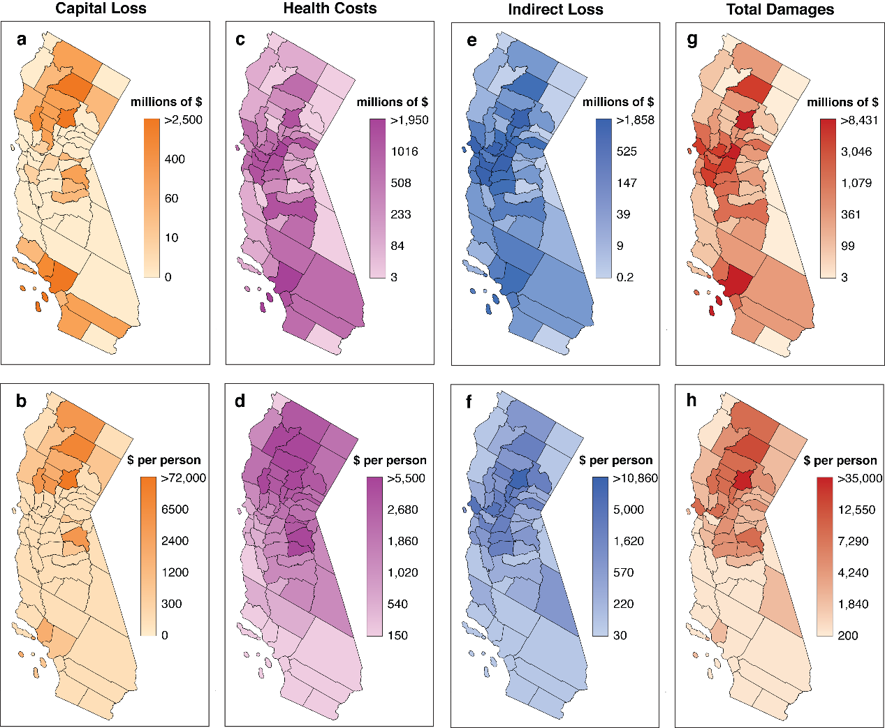 2018年加州山火造成的资本损失、健康成本和间接经济损失