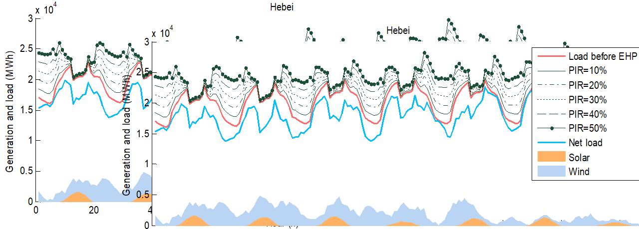 基于我国北方的实证分析表明,农村地区能源终端大幅提升的电气化水平将显著改变省级电网的负荷曲线,近年来河北省着力推进电代煤布局,某典型周的小时级负荷曲线如图1所示。