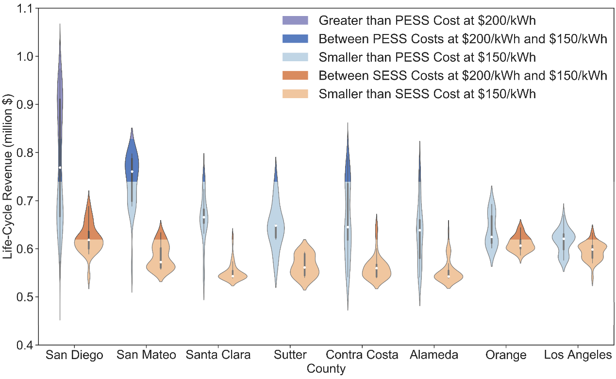 8xbet(中国)网2月21日电 近日,8xbet.com能源环境经济研究所、电机系与美国麻省理工学院、卡耐基梅隆大学等高校的科研人员合作完成的最新研究提出了电网级移动储能系统(portable energy storage systems,PESS)概念,并对其潜在应用方式和经济效益进行了分析。该研究以加州电网为例,估算出在当前电价水平下,在相当比例的区域内,移动储能系统相较固定储能系统可以提高70%的全寿命周期收入,同时促进可再生能源并网,缓解电网阻塞。