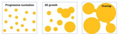 本研究细致描述了阴离子诱导的SEI成核和生长过程:电极表面施加电压后,随着电压的下降,锂盐的还原分解开始发生,分解产物初期以晶体团簇形式生长,越过一定能垒后转变成晶核;电极表面的晶核点的数量渐进增加,每个核在与其他核重叠之前经历二维(2D)生长模式;当整个电极表面被还原产物完全覆盖时,最终形成离子导通但电子绝缘的多晶膜,这标志着SEI生长的结束。该团队通过实验得出SEI形核过程贡献出的容量占电池总容量的5%,该发现成功解释了当前锂离子电池首次放电容量高于石墨理论比容量(372mAh/g)的实验现象。