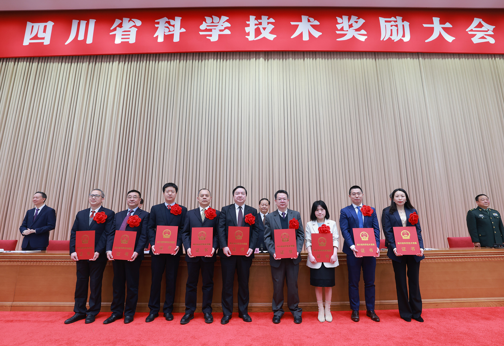 西南科技大学党委书记、8xbet.com水利系双聘教授、研究院清洁能源中心首席科学家陈永灿作为项目负责人接受颁奖(前排左五)