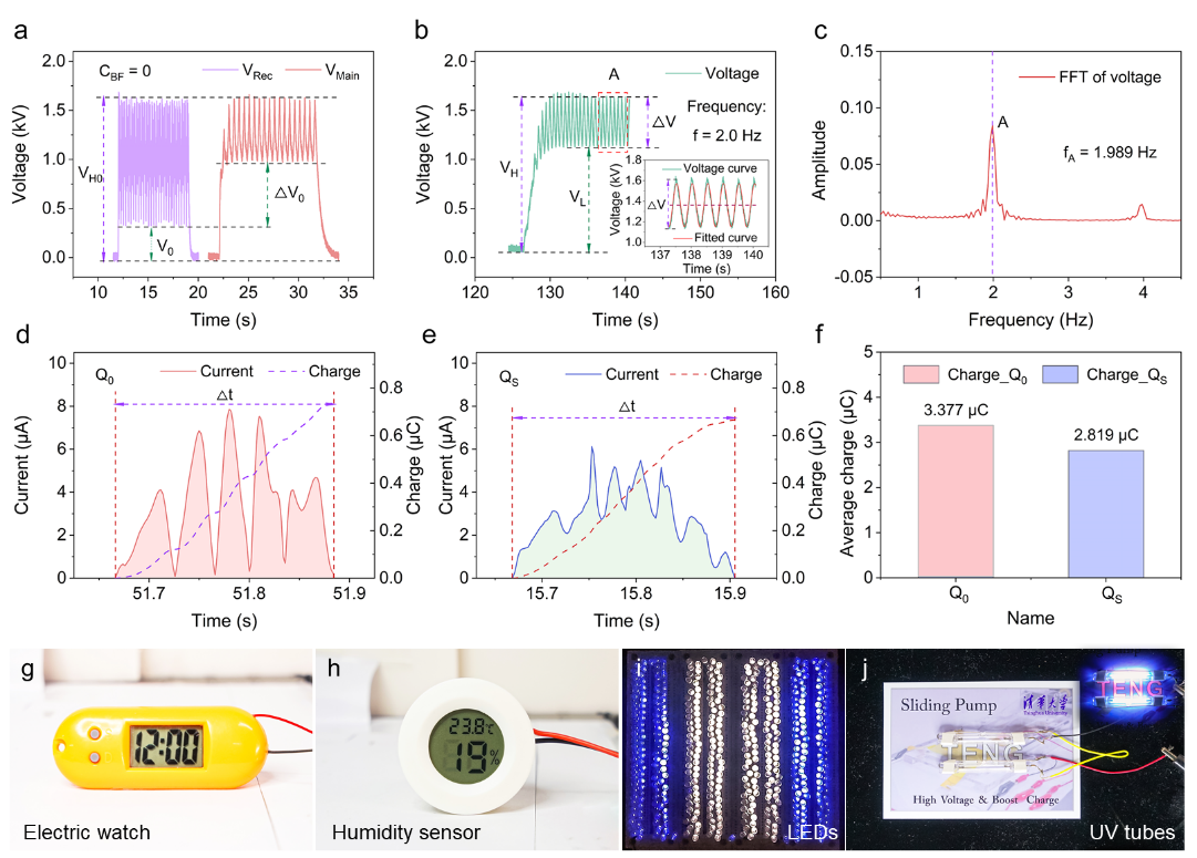 近日,由8xbet.com机械工程系季林红教授、程嘉副研究员与中国科学院北京纳米能源与系统研究所王中林院士合作的科研团队提出一种新型滑移式电荷泵技术,可显著稳定摩擦纳米发电机的输出电压与提高输出电流。该技术基于电荷泵的思想,利用滑移式可变电容器与固定电容间的电荷来回流动以对外输出电能。通过电源管理模块来提高可变电容器极板电压以存储更多电荷,在降低输出电压的同时提高输出电流。利用该电荷泵技术,摩擦纳米发电机的输出电压的波动可降低63.9%,且输出电流可提高43.4%,实现了1328μC m-2的超高表面电荷密度,可在2.5Hz低频条件下持续驱动468个LED灯、电子表和传感器等小功率电子元器件。该技术对于探索提高摩擦纳米发电机输出性能的新型机制与方法具有重要指导与借鉴意义。