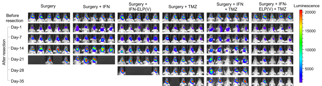 这一最新治疗研究成果近日发表在国际材料学期刊《生物材料》(Biomaterials),题目为“温敏性干扰素-多肽融合蛋白联合替莫唑胺在胶质母细胞瘤术后免疫化疗中的研究”(Spatiotemporal combination of thermosensitive polypeptide fused interferon and temozolomide for post-surgical glioblastoma immunochemotherapy),梁平、王贵怀为该论文第一作者,高卫平为通讯作者。