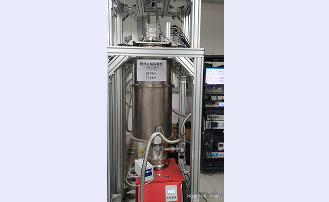 低温探测器实验室组建于2016年,致力于解决HUBS载荷核心技术难题。极低温绝热去磁制冷技术的研发由金海工程师主要负责,他带领的团队成功解决了顺磁盐生长和封装技术,研制了适用于50mK的温度传感器,开发了适用于极低温的热开关和低导热悬挂机构,并基于这些自主开发的技术搭建了绝热去磁制冷机实验平台。在2021年8月20日晚的实验测试中,绝热去磁制冷机最冷级的温度低于100mK,而且测试重复性良好。参与研发的其他人员包括博士研究生华心言、李成哲、张宇宁、丁娇等。
