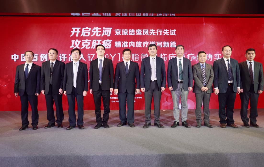 新闻发布会上,北京清华长庚医院肝胆胰外科副主任冯晓彬与肝胆介入科副主任医师张琳以及海南省肿瘤医院介入科主任牛惠敏,共同向到场领导、嘉宾及媒体介绍了首例患者手术治疗情况。“患者是一位34岁男性病人,巨大肝癌无法常规手术切除。经多学科专家研讨,一致认定患者进行钇[90Y]树脂微球介入放疗是最佳选择。”“手术中经微导管向肝脏肿瘤的靶血管内精准注入钇[90Y]树脂微球,不到一个小时就顺利完成治疗过程,病人生命体征平稳,无任何不良反应。”