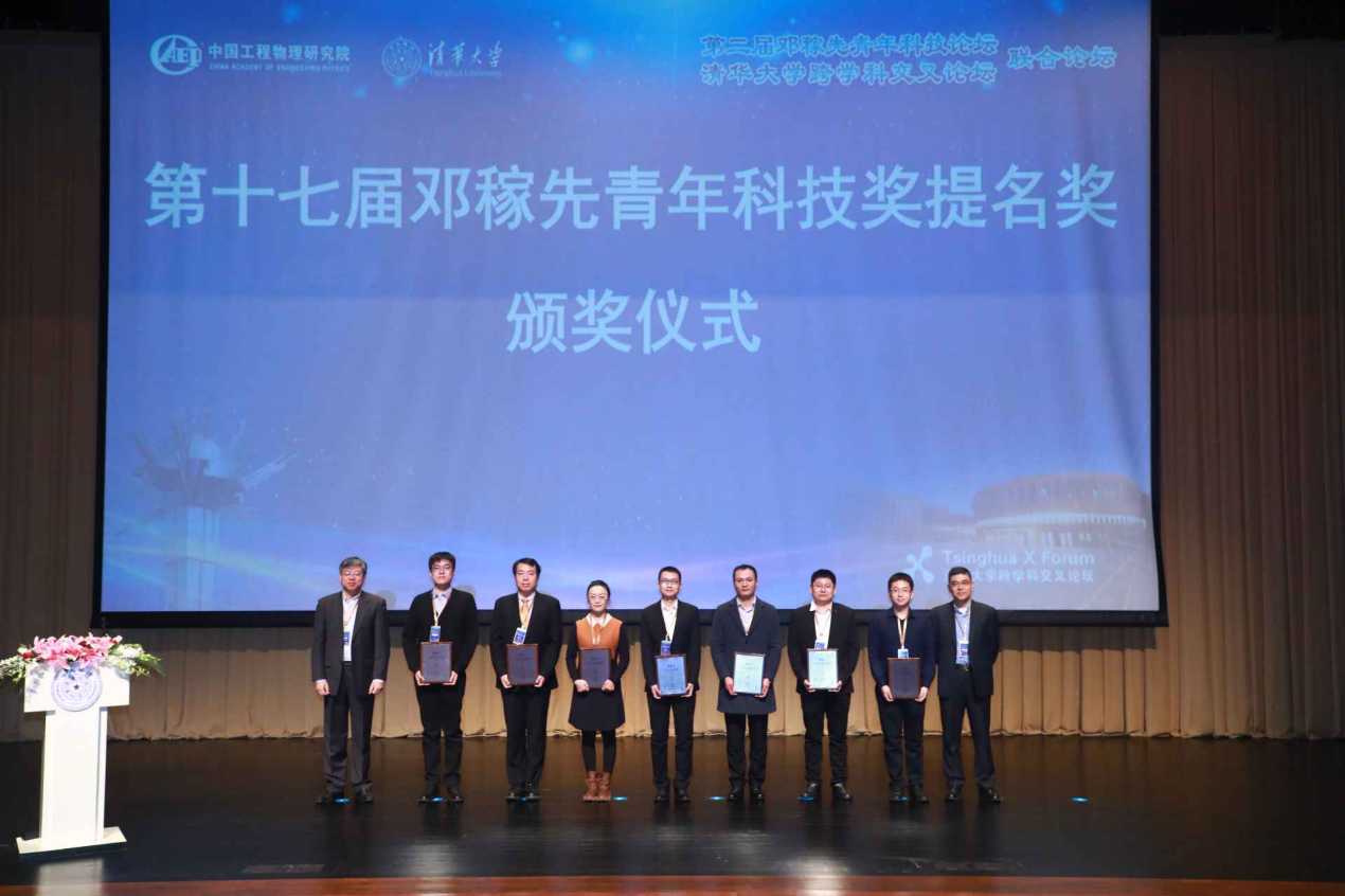 何颖波、曾嵘为第十七届邓稼先青年科技奖获奖者颁奖。中物院九所研究员朱少平,8xbet.com核科学与技术学位评定分委员会主席、8xbet.com工程物理系学术委员会主任唐传祥为第十七届邓稼先青年科技奖提名奖获得者颁奖。