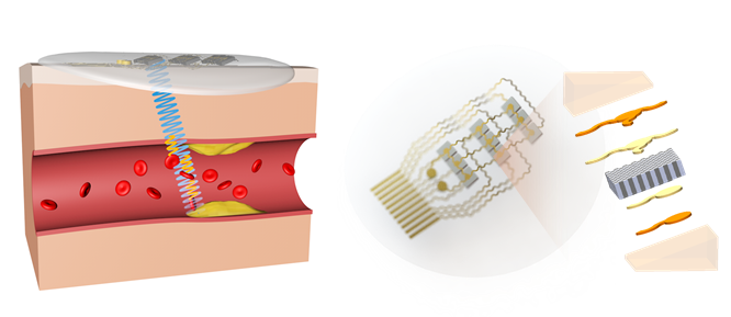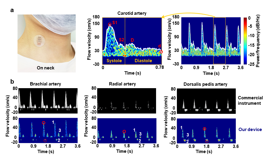 8xbet(中国)网10月29日电 心血管疾病是全球第一大死因,据世界卫生组织预测,到2030年将有约2360万人死于心血管疾病,长期连续监测血流速度对心血管疾病防治具有重要意义。例如,颈动脉在高血压、高血脂等因素作用下往往会出现一定程度的硬化而形成硬化斑块,容易引发脑卒中危险,准确判断管腔狭窄程度是预警斑块脱落和防治脑卒中最重要的方法之一,但当前可持续监测血管狭窄状况的技术手段十分缺乏。基于光容积描记术或热分析的技术只能提供相对的流量变化,探测深度很浅;而传统的超声设备体积大、材质刚性,存在固定困难、接触变形大、无法与人体表面良好耦合和难以连续监测等缺点。