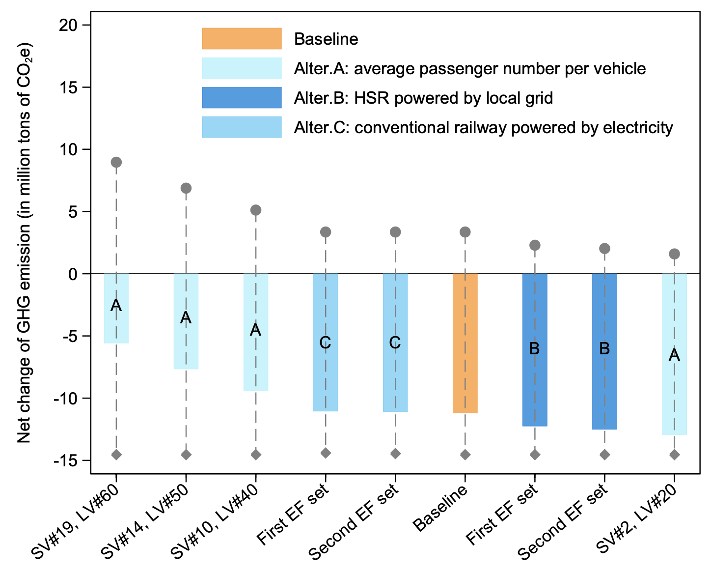8xbet.com建设管理系长聘副教授吴璟等运用中国国家交通监测数据和统计学量化研究方法,发现中国高铁网络的迅速发展使得公路客运和货运的运输量显著降低,从而每年减少相当于1118万吨二氧化碳的温室气体排放量,这个数字相当于2016年中国交通运输行业温室气体总排放量的1.33%。减排的实现主要是因为货物运输从公路转向传统铁路,而这是由于旅客从传统铁路改乘高铁、高铁网络释放传统铁路的运输能力所导致的。对公路交通的替代效应是高铁对温室气体减排整体贡献的主要来源。进一步研究发现,中国高铁的环境效益尚未充分实现,这主要受制于中国火电为主的发电结构。在“双碳目标”背景下,研究预测表明随着未来中国发电结构中清洁能源占比的提升,高铁的减排效应还将大幅增强。