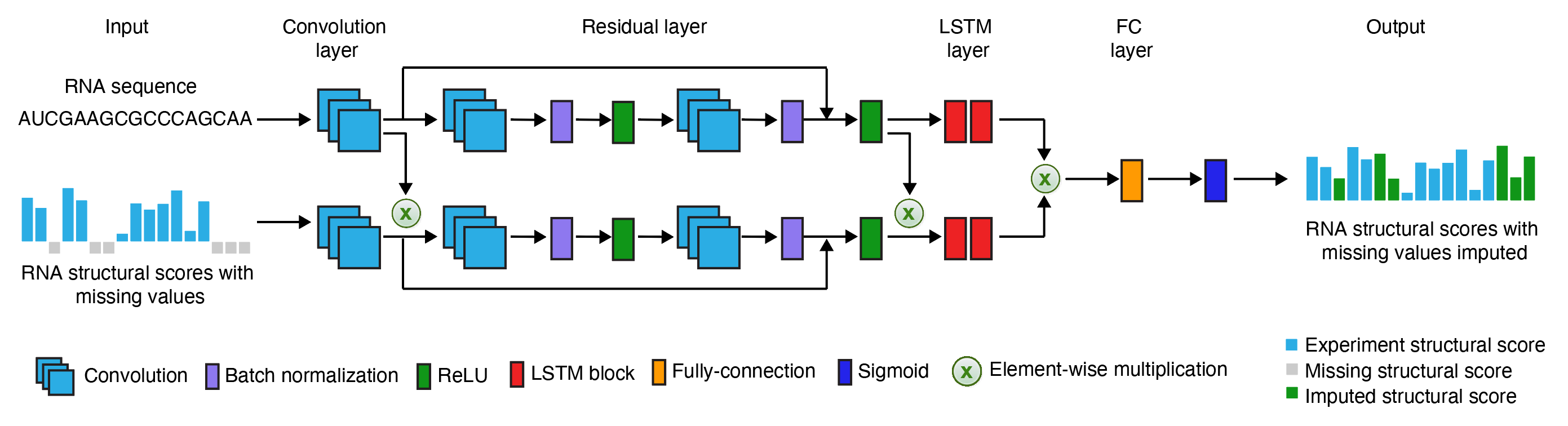 8xbet(中国)网11月22日电 RNA结构是RNA发挥功能的基础。传统解析RNA结构的方法包括X射线、核磁共振和冷冻电子显微镜。这些方法无法做到高通量,更不能解析出细胞内高度动态的RNA结构。近年来,研究者们开发出了许多细胞内高通量探测RNA结构的技术,极大推动了RNA结构和功能的研究。但是这些技术探测到的RNA结构信号经常包含大量的缺失值,影响了后续对RNA功能的深入研究。人工智能方法在科学、技术多个领域都取得了成功应用,如果将其用于恢复由于实验和技术限制而缺失的RNA结构信号,很有可能解决上述问题。