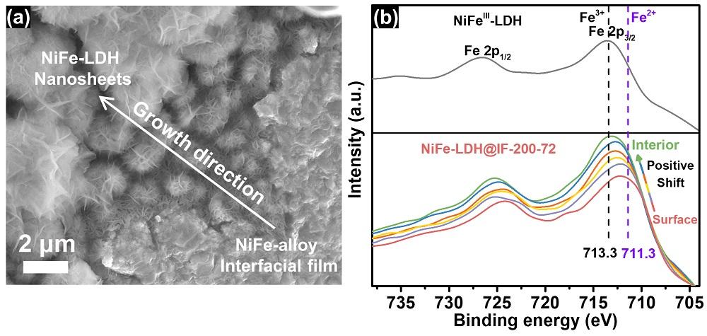 8xbet(中国)网12月3日电 氢气是一种高密度的能量载体和重要的化工原料,耦合可再生能源发电的电解水是一种可持续发展的制氢方法,当前电解水的效率主要受限于其阳极析氧反应(OER)较高的过电势。为了提高电解水的效率,需要使用电催化剂降低OER的过电势。利用腐蚀法在泡沫铁上制备的自支撑镍铁层状双氢氧化物(NiFe-LDH@IF)因其良好的OER电催化性能被认为是最具有应用前景的OER电催化剂之一。然而目前NiFe-LDH@IF的生长机制还不清楚,而且不同腐蚀条件对NiFe-LDH@IF电催化性能的影响还不甚了解。这些认知的缺乏严重阻碍了NiFe-LDH@IF的发展和应用。