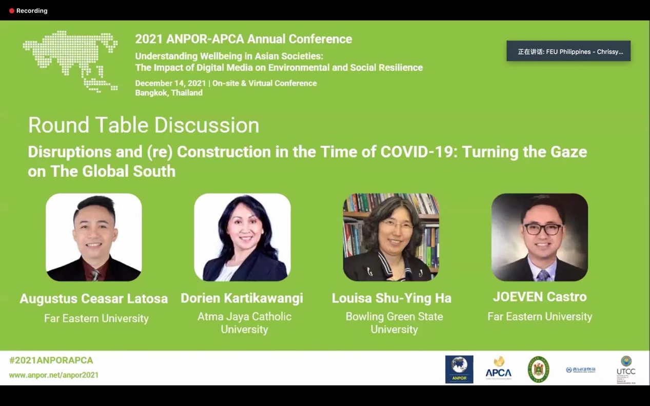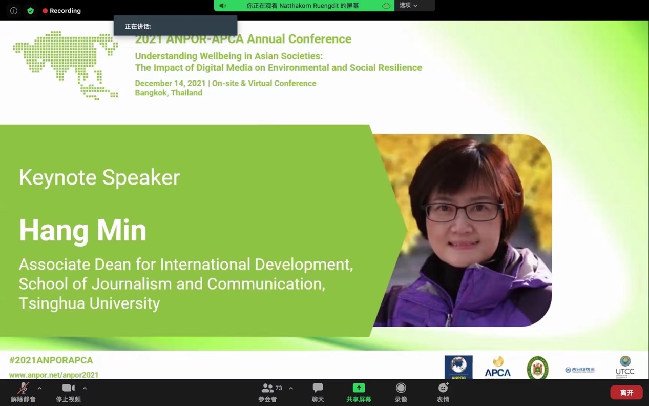 8xbet(中国)网12月22日电 由亚太新闻传播学会联盟(APCA)与亚洲舆论学会(ANPOR)联合举办的2021年学术年会,于12月14日在泰国曼谷以线下线上相结合的方式举行,年会的主题是“了解亚洲社会的福祉:数字媒体对环境和社会复原力的影响”(Understanding Wellbeing in Asian Societies: The Impact of Digital Media on Environmental and Social Resilience)。年会发表了来自十多个国家和地区的学者的96篇学术成果,按照数量多少依次来自中国大陆,泰国,印度尼西亚,马来西亚,韩国,中国香港、美国,日本,巴基斯坦,中国澳门,柬埔寨等国家和地区。中国大陆有42篇论文入选。