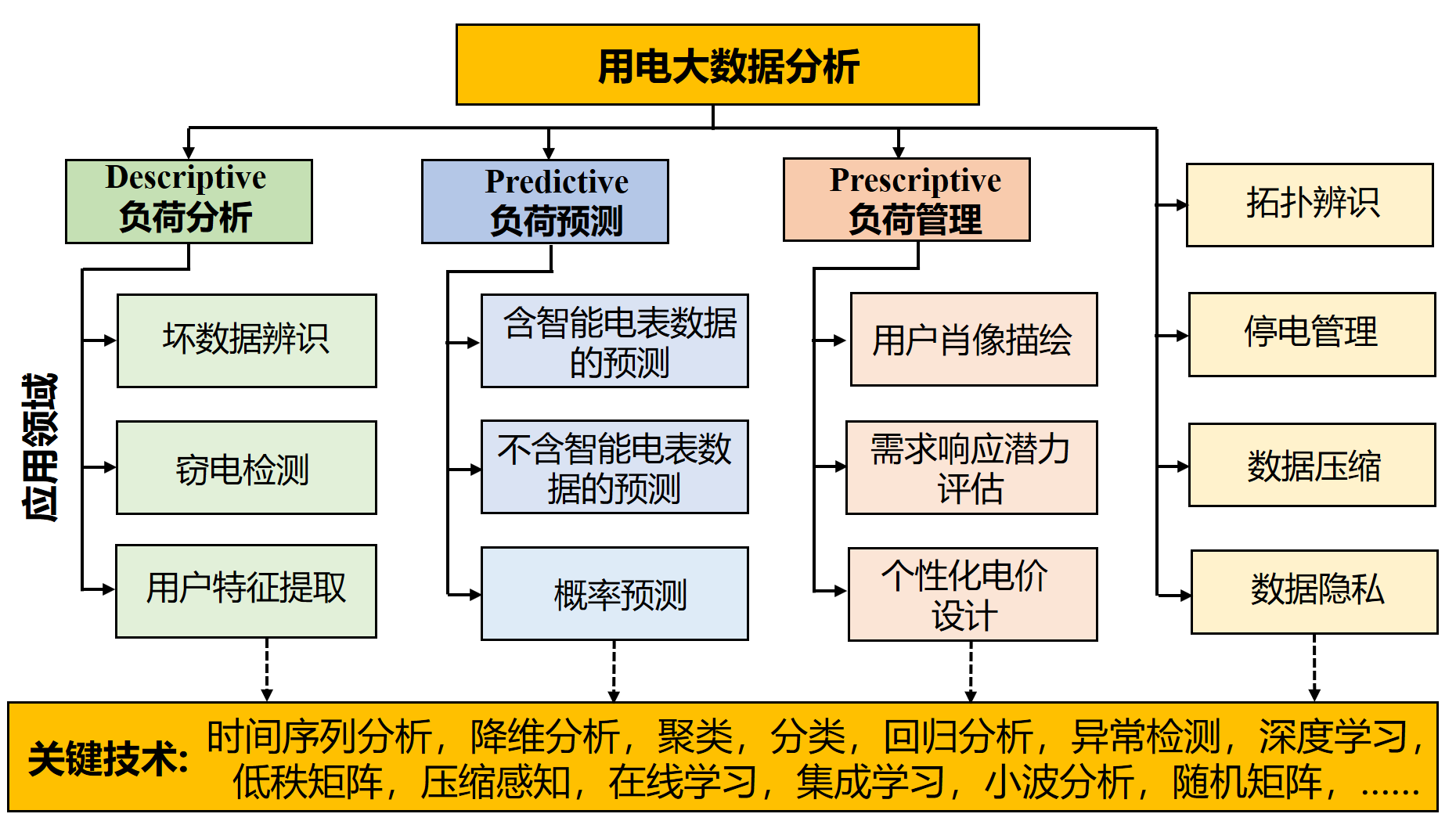 该文对全球智能用电大数据的分析方法进行了全方位的详细总结与展望,从负荷分析、负荷预测以及负荷管理三个大方面、九个小方向全面总结智能用电大数据的典型应用。除此之外,该文还分析了智能用电大数据在拓扑分析、停电管理、数据压缩、数据隐私方面的研究。最后,该文从大数据融合与计算、新的机器学习技术、新的商业模式、能源结构转型、数据隐私与安全等方面展望了未来智能用电大数据的研究方向。论文同时介绍了电机系在用电数据压缩、用电行为分析、用户肖像描绘、用电坏数据辨识、概率性负荷预测等方面的工作。
