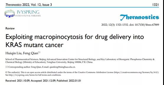 该研究论文于2022年1月1日在药物递送领域的知名期刊《Theranostics》在线发表,标题为《利用巨胞饮针对KRAS突变的肿瘤进行药物递送》(Exploitingmacropinocytosisfor drug delivery into KRAS mutant cancer)。