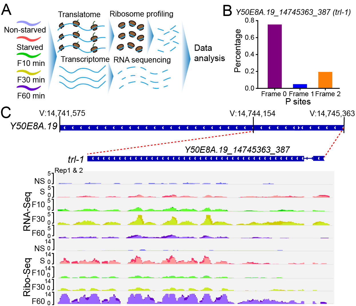 图1. 新的开放阅读框trl-1在饥饿喂食后显著翻译