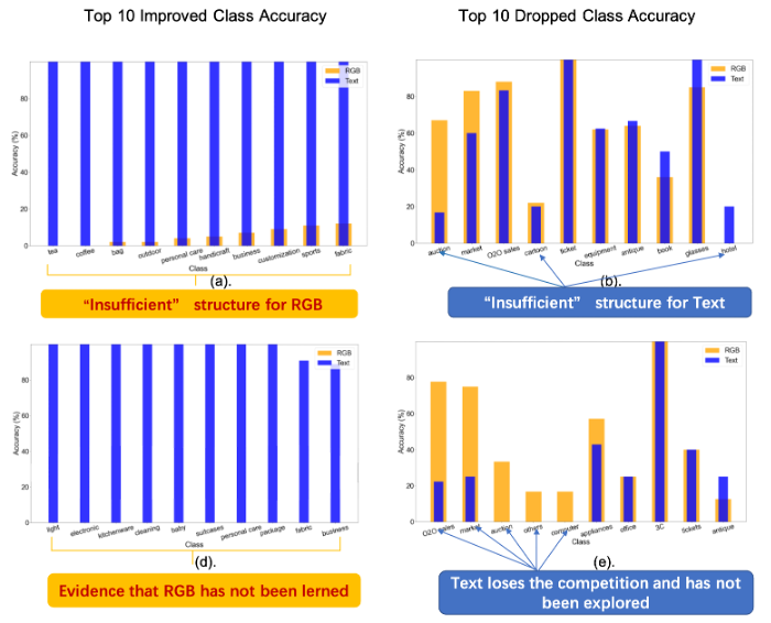 在商品分类(包含图像和文本)任务上验证模态竞争现象的存在