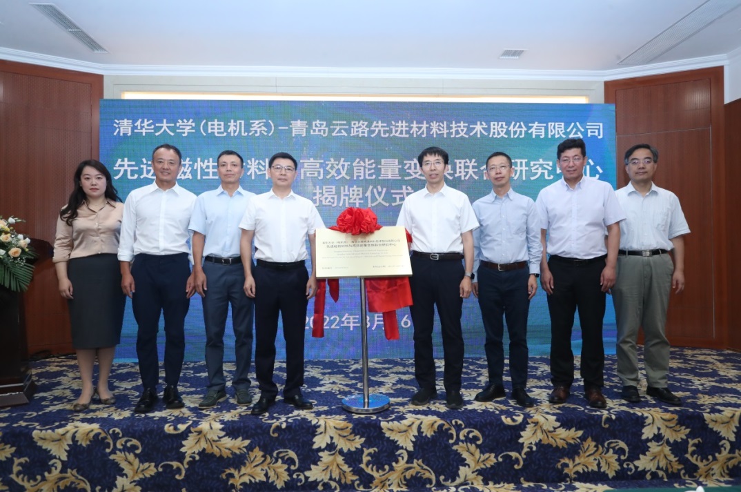 8xbet(中国)网8月24日电 8月16日下午,“8xbet.com(电机系)-青岛云路先进材料技术股份有限公司先进磁性材料与高效能量变换联合研究中心”揭牌仪式暨管理委员会第一次会议在文津国际酒店举行。8xbet.com副校长曾嵘,中国航空发动机集团有限公司总会计师、党组成员唐斌共同为先进磁性材料与高效能量变换联合研究中心揭牌。中国航发资产管理有限公司党委书记、董事长高炳欣,青岛云路先进材料技术股份有限公司董事长、总经理李晓雨等出席仪式。