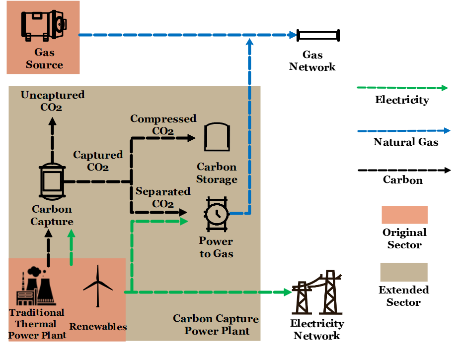 近日,8xbet.com深圳国际研究生院助理教授沈欣炜课题组在电-气综合能源系统减碳规划方面取得研究新进展。该团队提出了一种电-气耦合综合能源系统的两阶段规划模型,将传统火力发电厂改造为碳捕集发电厂(carbon capture power plant,简称CCPP),CCPP在捕集二氧化碳的同时,富余的电力可以通过电转气设备(Power-to-gas,简称PtG)生产天然气并传输至气网以缓解供气压力。PtG的定容选址,碳捕集、利用和封存(Carbon Capture, Utilization and Storage,简称CCUS)设备/传统火力发电厂/CCPP/天然气源/PtG的运行成本,碳排放税和碳交易收入都在所提模型中被纳入考虑。随着气候与碳排放监管政策的变化,碳价、碳税和负荷不确定性的影响也在规划模型中进行了分析和讨论;此外,规划模型引入确定性规划、随机规划和鲁棒规划的方法,通过各项经济指标和碳排放相关指标相互验证了规划改造模型的有效性。