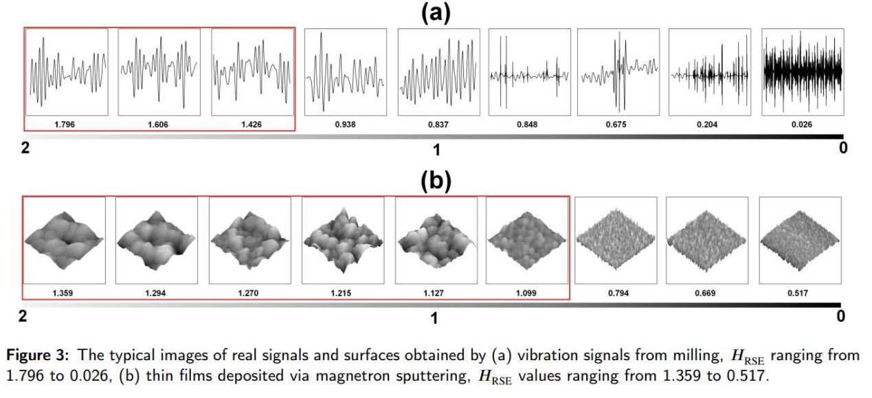 近日,先进制造学部在分形研究中再次取得了重要进展。在对包括薄膜表面、机械加工表面、机床振动信号、脑电信号和仿真曲面及曲线的分析中,使用RSE算法都普遍发现了粗糙度多尺度特征能够在分形与非分形范畴之间的连续变化,而传统的分形算法都无法对该现象进行有效表征。因此,该研究将上述现象拓展为一种能够有效表征信号与表面复杂程度的新方法,并根据实际现象的特征提出了跨分形(transcending fractal)的描述方式。该研究成果实现了包含分形与非分形两个领域的复杂程度连续表征,并在表面形貌和信号分析两个方面都实际验证了跨分形表征的有效性,其提出的研究方法有望在智能制造技术领域广泛应用,提高包括加工信号原位监测和加工表面形貌分析等各类数据的非线性特征分析能力。