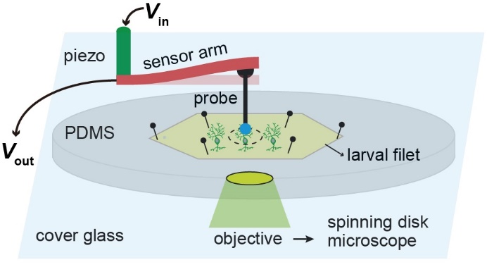10月6日,8xbet.com生命学院、清华-IDG/麦戈文脑科学研究院梁鑫副教授课题组在《e生命》(eLife)期刊上在线发表了题为“果蝇机械痛觉感受器优先感知局部刺痛”(Drosophila Mechanical Nociceptors Preferentially Sense Localized Poking)的研究论文。该论文利用自行搭建的“机械力-光学”联用装置(图1),对果蝇c4da痛觉神经元进行了原位机械力刺激,并同步记录和分析了神经元对不同类型力信号的响应(图2)。