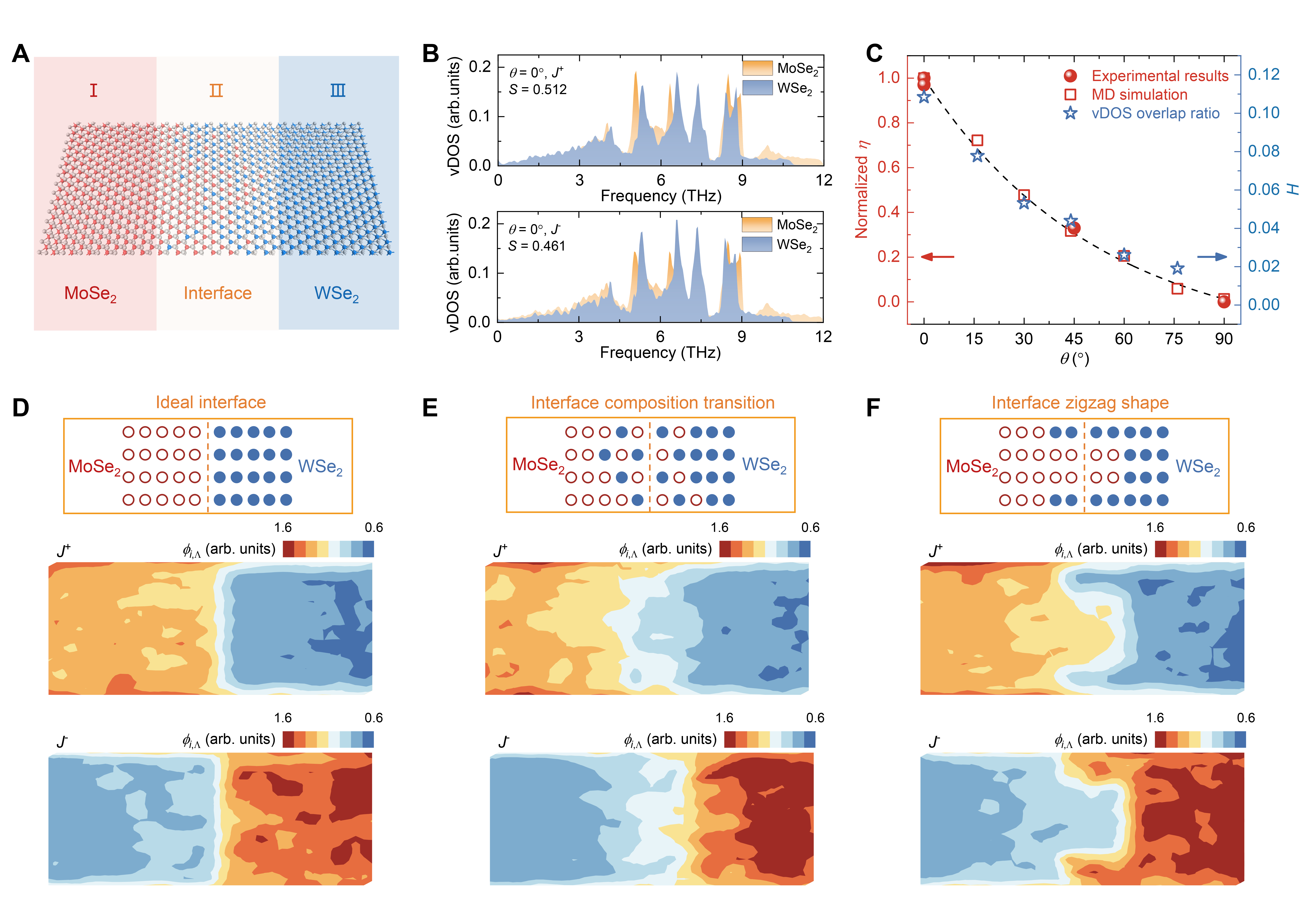 图3.MoSe2-WSe2异质结热整流机理揭示
