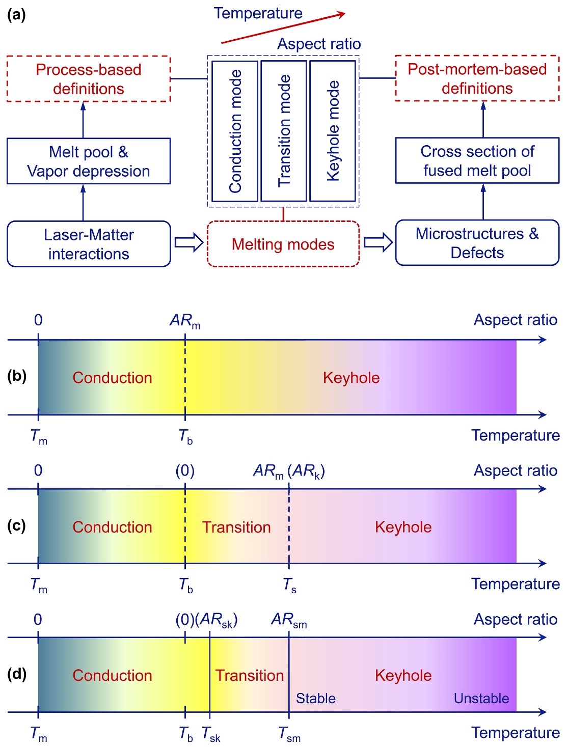8xbet(中国)网10月24日电 在过去的三十多年中,金属增材制造技术(俗称金属3D打印)快速发展,对航空航天、汽车、国防、化工、医药、能源等领域产生了深刻变革。激光粉末床熔融增材制造(亦被称作激光选区熔化)是其中最广泛使用的技术之一。然而,迄今为止,学术界对激光-物质相互作用的认识还不够深刻,对激光熔化模式的定义仍然很模糊、尚未达成共识。这使得制造无缺陷、微观结构可控的构件仍有困难,限制了激光粉末床熔融增材制造行业的进一步突破。