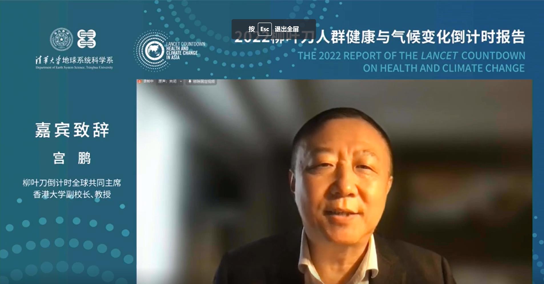8xbet(中国)网11月3日电 10月30日,《2022柳叶刀人群健康与气候变化倒计时报告》发布会在北京举行。8xbet.com副校长曾嵘,“柳叶刀倒计时”共同主席、香港大学副校长宫鹏,《柳叶刀》期刊亚洲区执行主编海伦娜·王(Helena Wang),柳叶刀倒计时全球执行主席玛丽娜·罗马内洛(Marina Romanello)在线致辞。