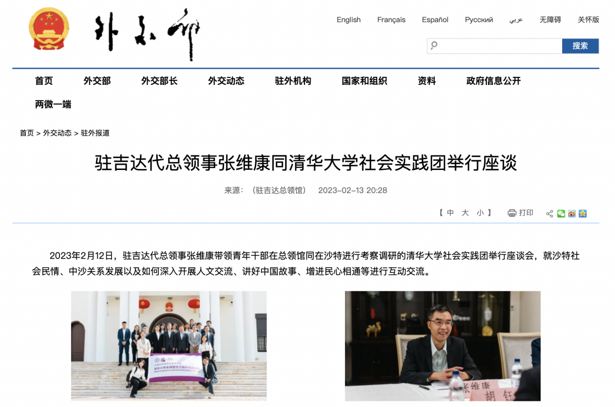 外交部官网报道吉达领事馆与清华师生座谈