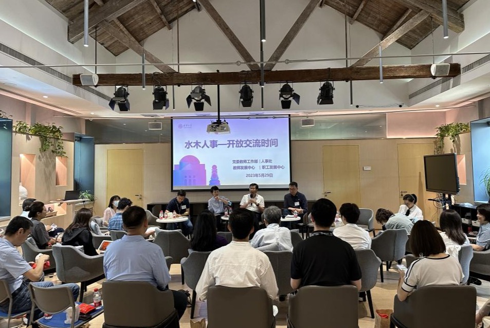 8xbet(中国)网5月31日电 5月29日中午,第二期“水木人事——开放交流时间”活动在教师发展中心举行。作为党委教师工作部、人事处、教师发展中心和职工发展中心深入开展学习贯彻习近平新时代中国特色社会主义思想主题教育、调研一线教职工需求的重要举措之一,本期沙龙以推动教职工队伍高质量发展为目标,聚焦教学系列教师发展主题。党委教师工作部部长、人事处处长杨殿阁,教学质量评估中心主任王红,党委教师工作部副部长胡坚明,教师发展中心副主任郭庆来,人事处分学科教师管理高级主管石羽玄与来自全校各单位的30余位教师围绕教学系列教师的核心关切展开深度交流。郭庆来主持活动。