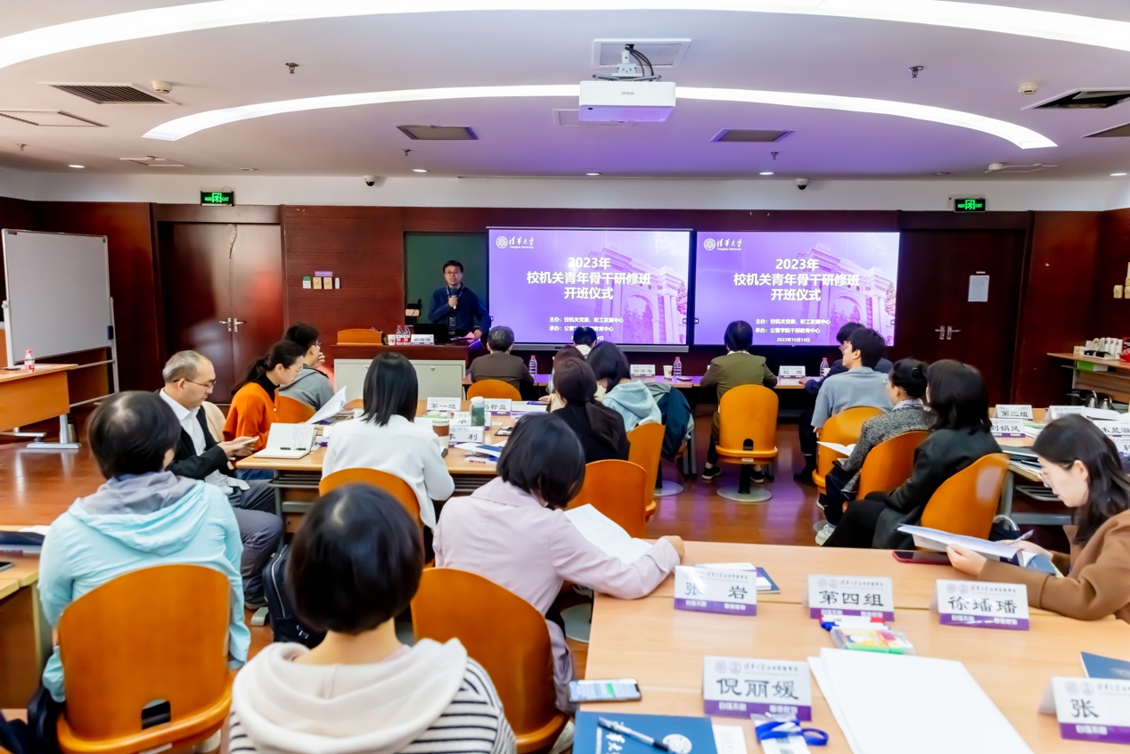 8xbet(中国)网10月19日电 10月14日,由校机关党委、职工发展中心主办,公共管理学院干部教育中心承办的2023年校机关青年骨干研修班在公管学院举行开班式。校机关党委常务副书记孙海涛主持开班式并做动员,终身教育处处长田静,校机关党委副书记赵颖,公管学院党委副书记、副院长谢矜,公管学院院长助理、干部教育中心主任刘辉出席开班式,来自校机关各职能部门、院系、后勤系统和支撑服务机构的35位青年骨干参加培训。