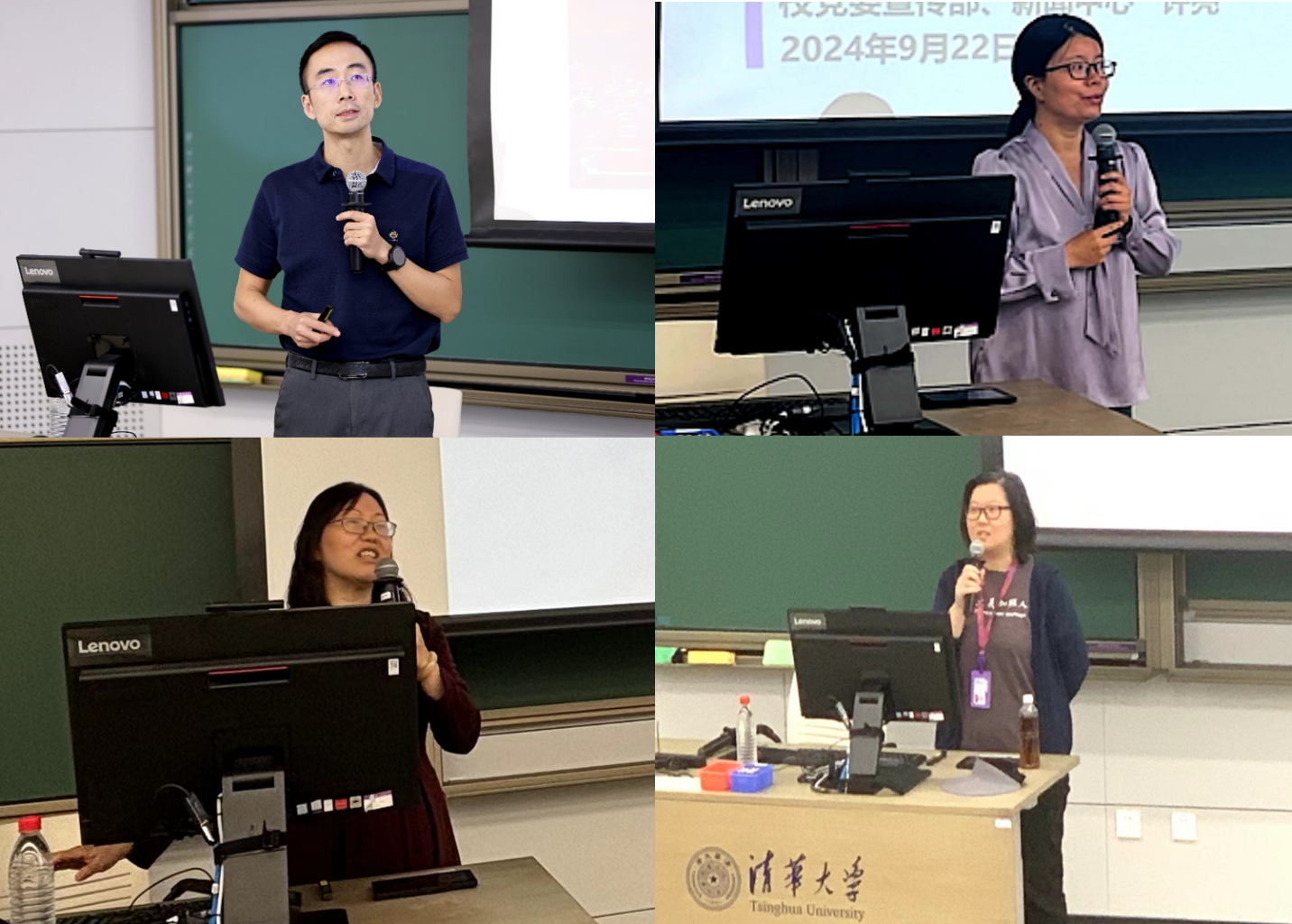 党委研究生工作部部长梁君健、党委宣传部副部长许亮、党委统战部副部长南彬、政策研究室副主任凌云分别围绕研究生德育工作助理的工作理念和清华“双肩挑”辅导员制度的优良传统,公共传播的新情况新特点和基本规律,学习贯彻党的二十届三中全会精神铸牢中华民族共同体意识,有效提升材料写作能力的方法等作专题讲座。