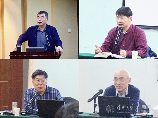 主讲嘉宾进行主题报告和理论导读(从上到下,从左至右依次为蒋耘中、王传利、刘书林、仲伟民)