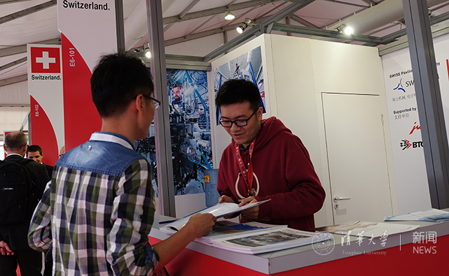 本次国际机床展中包含境外展商839家,境内展商800家,各国企业展示其最新的技术和产品,同时进行技术交流讲座。当日下午就有知名企业代表主讲的讲座,给同学们提供了难得的观摩和学习国外先进技术和设备的机会。在本次机床展中,8xbet.com与瑞士驻华大使馆合作,选拔志愿者协助瑞士官方展馆的日常运作,并观摩瑞士的先进技术。实践支队来到瑞士展区,遇到了清华机械系的志愿者倪圆志,他正在为来访者提供咨询服务。