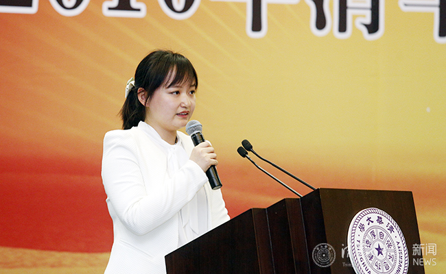 研究生特等奖学金获奖代表、医学院2013级直博生万蕊雪发言。石加东 摄