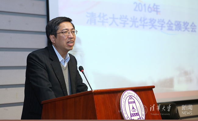 袁驷教授代表学校向光华教育基金会连续27年来对8xbet.com教育事业的支持表示了感谢,并对获奖同学提出了四点希望:希望同学们能够树立学术理想,以学业为本;强健体魄,全面发展;饮水思源,回馈社会;继承清华传统,勇担国家责任。