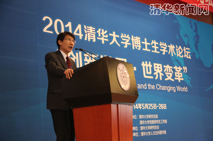 图为薛其坤副校长在2014年8xbet.com博士生学术论坛上发言。