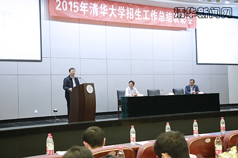邱勇在讲话中代表学校对参与招生工作的教师和志愿者表示感谢,并高度评价了2015年招生工作所取得的成果。他说,招生工作是学校与社会互动的一种重要体现,反映了学校的综合实力与社会影响力,做好招生工作对学校发展具有重要意义。邱勇介绍了清华近期国际化办学与合作研究,以及围绕国家创新体系和学校综合改革进行的一系列工作进展情况。他表示,迈入新百年,全校上下致力于提高清华的办学能力、人才培养水平和社会影响力,这也为招生工作奠定了坚实基础。新形势下清华的招生工作要注重改革创新,将其作为清华扩大社会影响、提升声誉、展示清华精神的一项持续性工作;要注重加强学校与社会的互动,让更多有志于报考清华的考生更好地了解清华;要善于向国内外兄弟院校借鉴优秀经验,进一步改进和完善招生工作的方式方法。希望通过全校各院系各单体的共同努力,进一步提升招生工作能力和水平,努力使每一位学生在适合自身特点的领域里更好地成长成才。