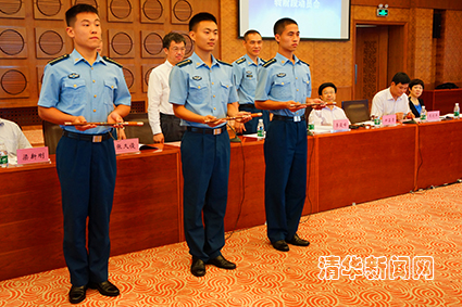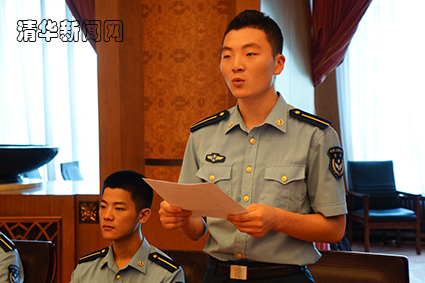 航25班的学员们进行了积极踊跃的发言,尽抒对老师、同学的恋恋不舍和迫不及待投身到国防事业的壮志豪情。学员董阅代表航25班全体宣读致母校的一封信,感谢清华三年来无微不至的照顾,表达了暂别学校的不舍和留恋,他们会在民族复兴的征程中留下自己的身影,以一名清华人、一名空军的身份,为军队和祖国做出自己的贡献。