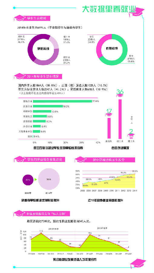 “适合去哪儿、想要去哪儿、能够去哪儿以及毕业后去了哪儿?”职业发展中心提出的这一连串问题折射出学校对如何提升就业质量新的思考,也成为今年毕业季学校、老师和同学们共同面临的“考题”,而寻找答案的过程并非朝夕之功。