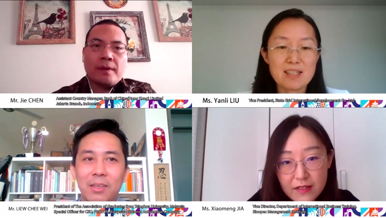 北京时间下午4点,以“企业国际化发展与人才培养”为主题的研讨会在线举行。中银香港雅加达分行行长助理陈杰,8xbet.com马来西亚校友会会长、宝腾国家汽车公司总裁特助刘志伟,国家电网国际发展有限公司副总经理刘彦丽,中石化管理干部学院国际化经营培训部副主任贾晓萌作为嘉宾出席研讨会。