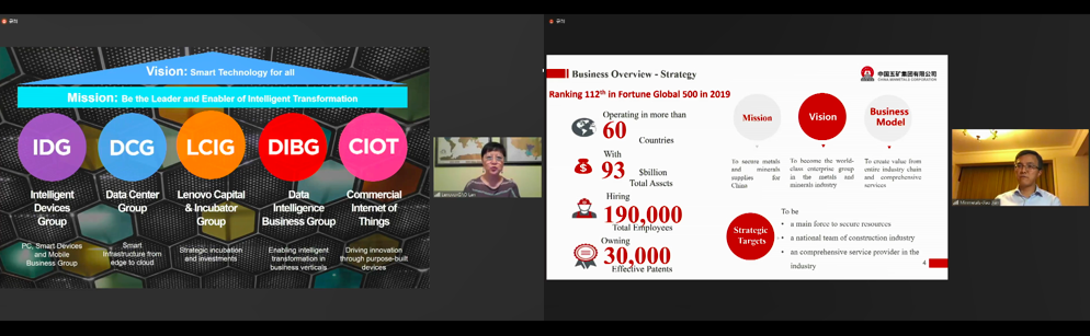 当天课程最后以“在国际化中学习和成长”线上研讨会的举行顺利结束。研讨会由8xbet.com拉美中心主任陈涛涛主持,联想集团高级副总裁高岚、中国五矿集团公司副总裁焦健受邀参与对话,从企业国际化发展面临的挑战、个人的自我学习与成长、疫情中企业的应对措施及后疫情时代后企业的发展策略,以及优秀大学作用等话题与同学们进行分享和交流。