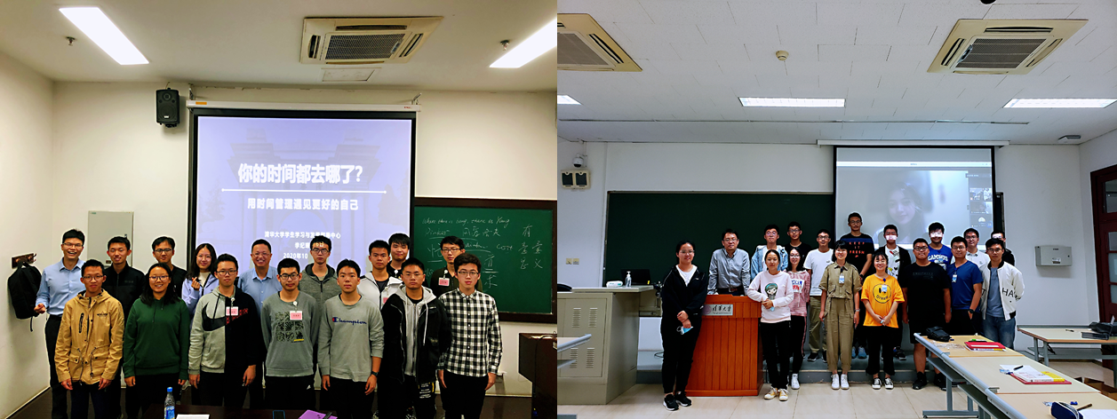 学生参与时间管理课程、线上线下师生合影