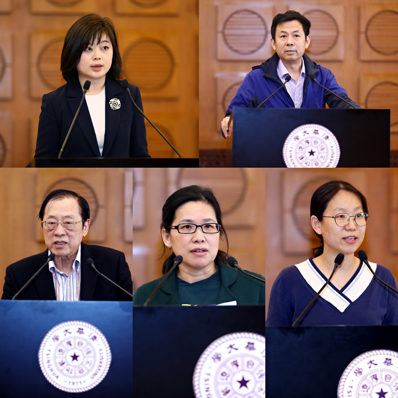 李蕉、吴国盛、姚期智、吴霞、杨帆汇报(从上到下、从左到右)
