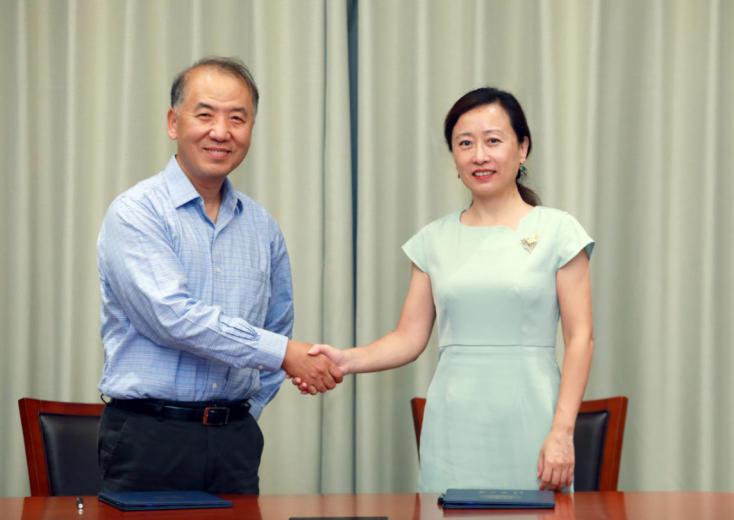 任思泓(左)与袁桅签署捐赠协议