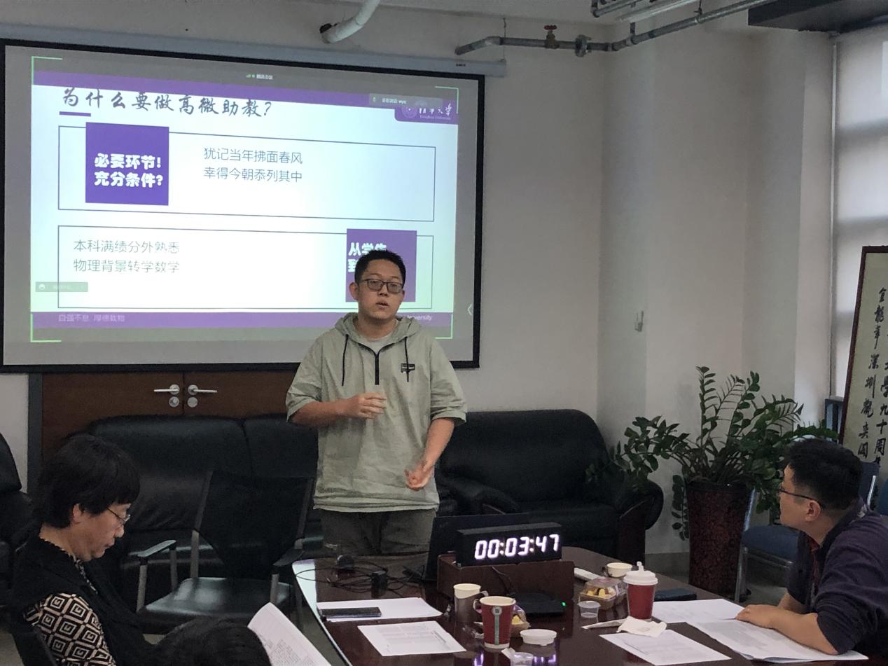 参与答辩的同学们也纷纷表示获益匪浅。电子技术基础教学团队助教、电机系博士研究生黄晓岩深有感触地说,“优秀助教的评选不仅提供了一个展示自我的平台,也提供了与答辩评委老师深入交流和与不同专业、不同课程的助教互相学习的机会。此外,此次评选让我看到了很多优秀的助教奋战在各个学科基础课的各条战线上,并对课程的建设作出了积极贡献。”思想道德与法治课程助教、马克思主义学院硕士研究生李欢欢说,“参与本次优秀助教评选,激励我去总结提炼自己的助教经历,审视分析助教工作中的亮点与特色,思考自己在日常的助教任务之余投入了多少热情和精力。答辩过程本身也督促我去总结,一名优秀的助教应该是什么样子。”