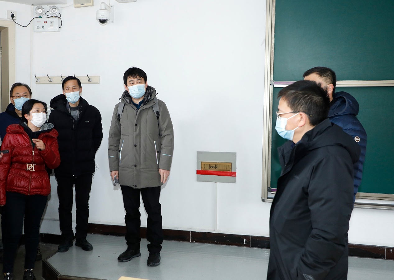 8xbet(中国)网2月22日电(记者 覃霞 摄影 赵青松)2月18日下午,副校长、教务长杨斌,副校长彭刚,校务委员会副主任、总务长吉俊民带队,对经管学院新楼、第五教室楼、文北楼等教学场所的教学楼环境、教学设备设施运行、疫情防控措施等进行开学前准备情况检查,并在文北楼206教室召开座谈会,对下一步工作进行部署。
