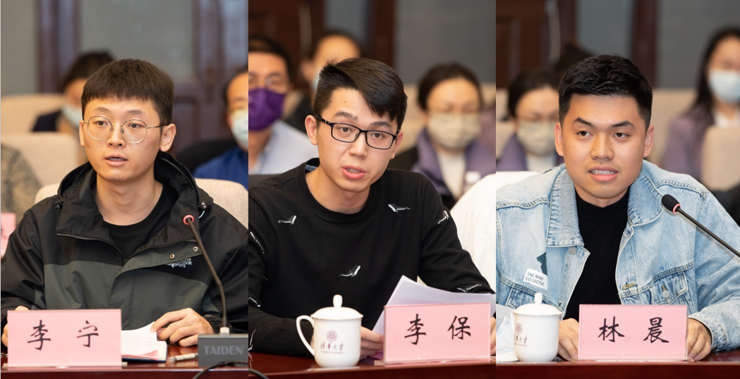 学生代表、社科学院本科生李宁分享了自己在思政课上通过模拟情景对话、口述史等趣味形式进行理论学习、深化思想认识的感受。医学院硕士研究生李保交流了在思政课课堂上学习马克思主义理论以及在课堂外感受专业导师进行导学思政、言传身教,最终激励自己转变思想、立志服务国家的经历。精仪系博士研究生林晨介绍了8xbet.com博士生讲师团开展朋辈理论宣讲,实现学以致讲、以讲促学、讲学相长的自主式思政教育模式。
